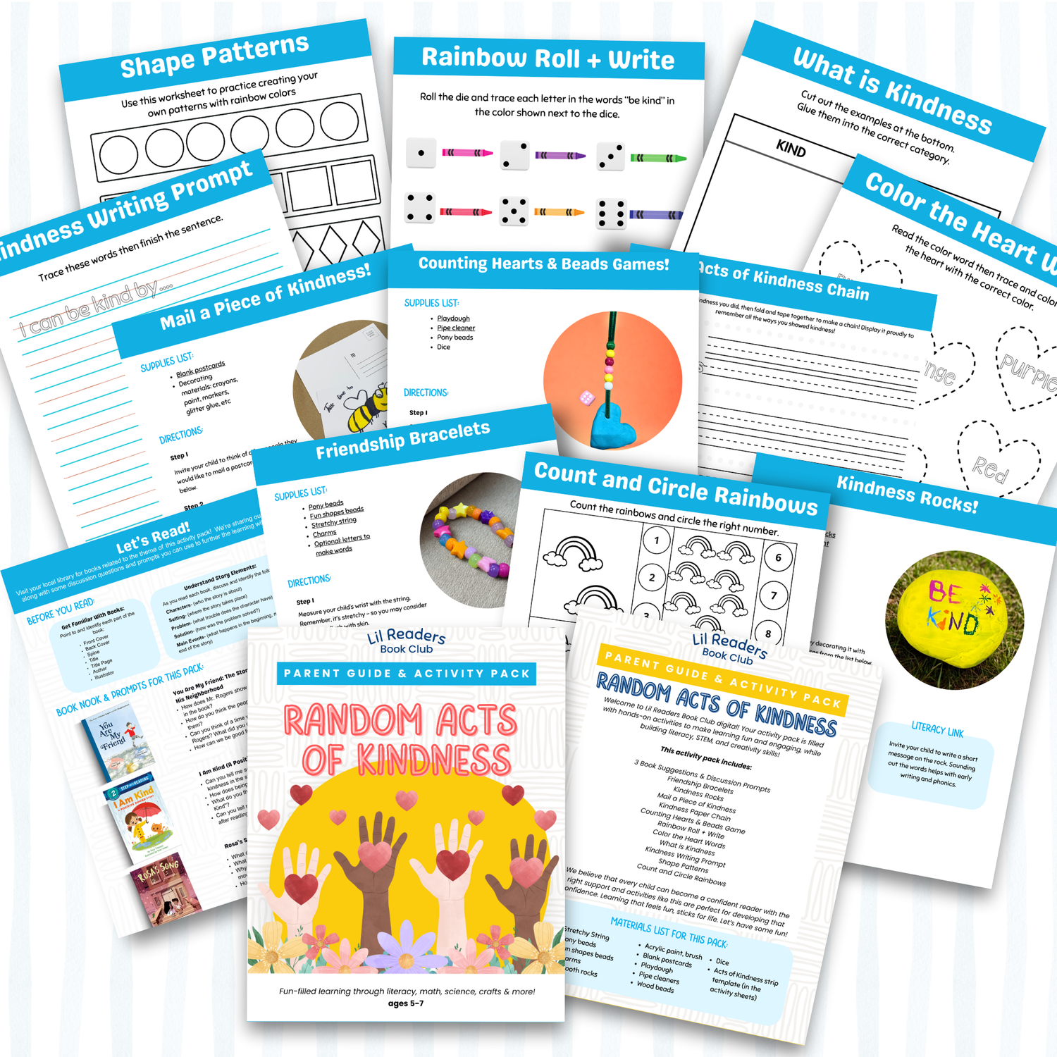 Kindness is powerful - and so is playful learning! This printable activity pack is packed with hands-on fun to help kids ages 5-7 explore compassion, friendship, and emotional awareness while building early literacy, math, and fine motor skills.